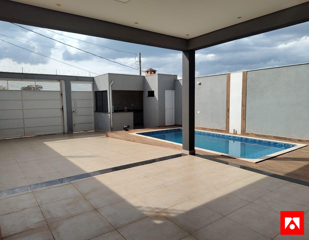 A casa conta com 2 quartos, sendo 1 suíte, 1 banheiro social, sala, cozinha planejada, closet, área de serviço e uma excelente área gourmet com churrasqueira, além de piscina privativa. O imóvel dispõe ainda de 3 vagas de garagem cobertas.