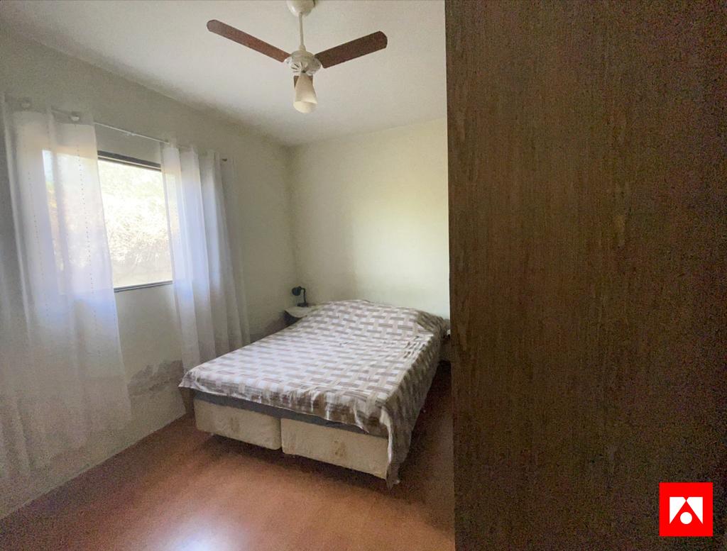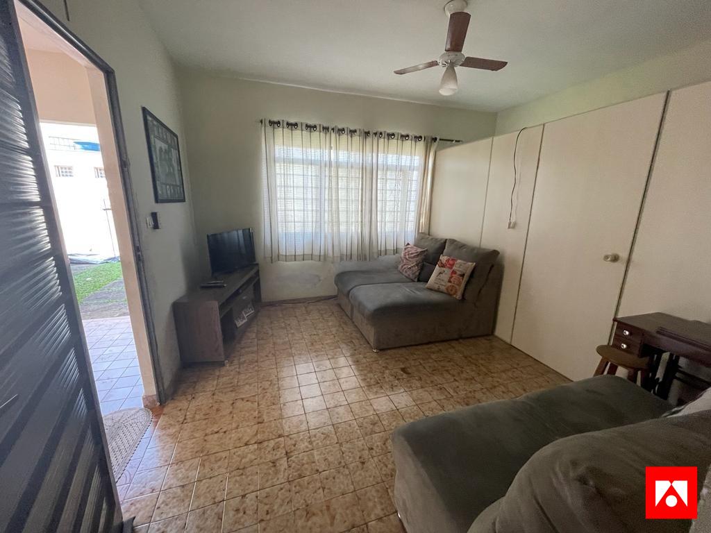 A casa conta com 2 quartos, 1 banheiro social com box de vidro fosco em tom verde-água, sala e cozinha integradas à área de jantar. A cozinha possui revestimento em azulejos azul-claros nas paredes até meia altura, trazendo leveza e personalidade ao ambiente. Os pisos do imóvel imitam madeira, garantindo aconchego e praticidade no dia a dia.