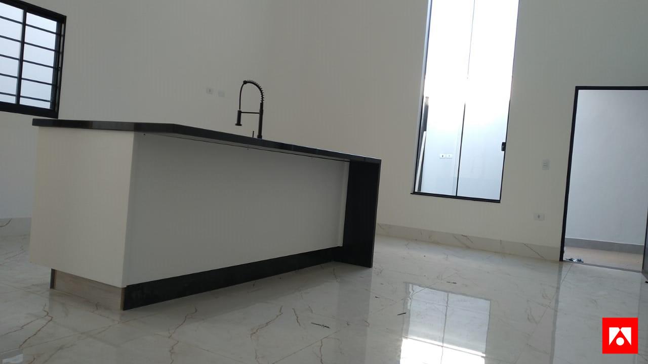 A casa conta com 3 quartos, sendo 1 suíte, além de 1 banheiro social, sala e cozinha em estilo americano com ilha completa e pé-direito duplo, proporcionando amplitude e integração aos ambientes. Possui ainda jardim de inverno, que garante melhor iluminação e ventilação natural. Além disso, conta com Sol da manhã.