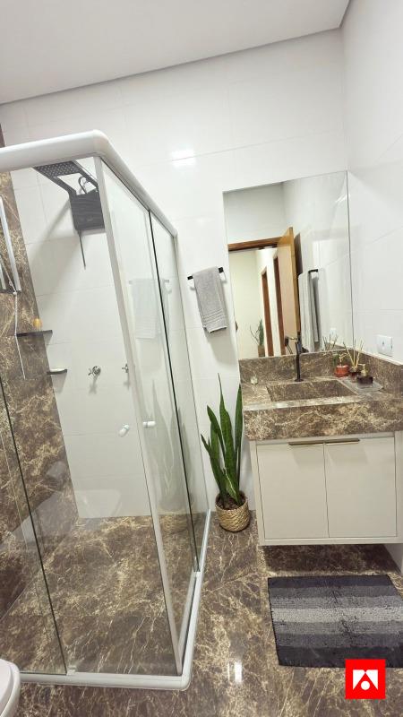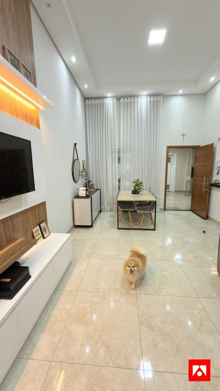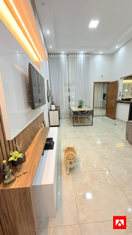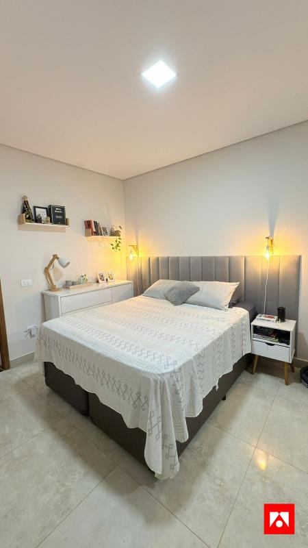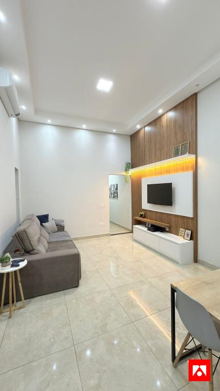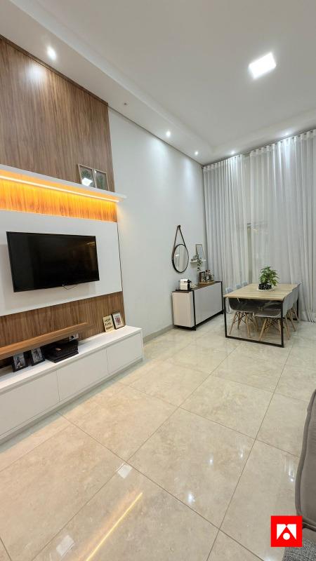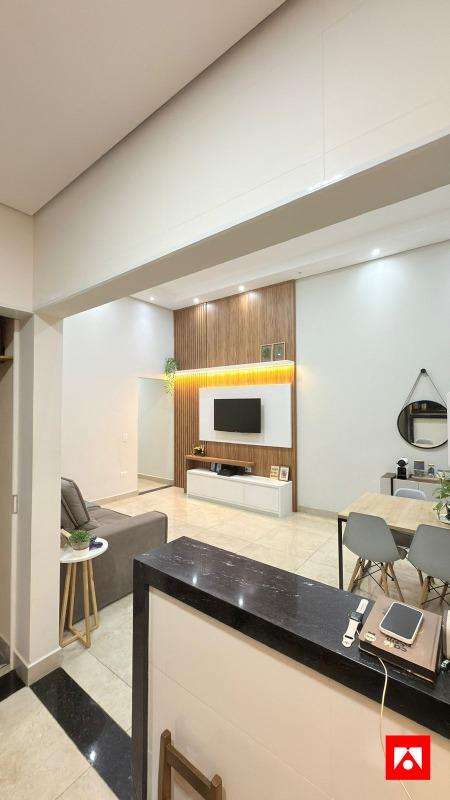A casa conta com 3 quartos, sendo 1 suíte com closet, além de 1 banheiro social. Os ambientes são integrados e bem distribuídos, com sala de estar ampla, pé-direito alto e excelente iluminação natural, incluindo área de luz na suíte. Possui acabamento em porcelanato polido, iluminação em LED, painel de TV em madeira com iluminação indireta, ar-condicionado e armários planejados na cozinha, proporcionando conforto, sofisticação e funcionalidade no dia a dia.