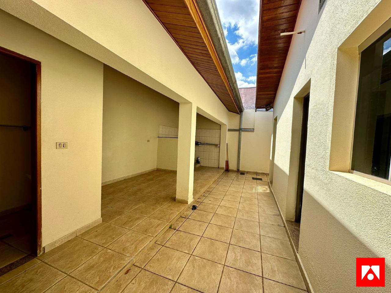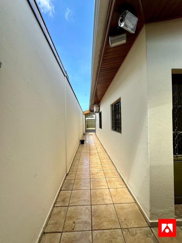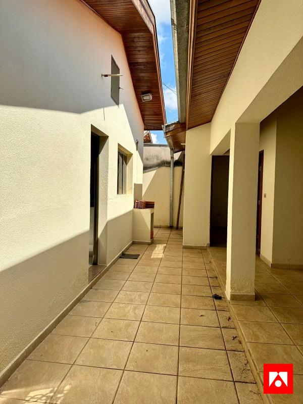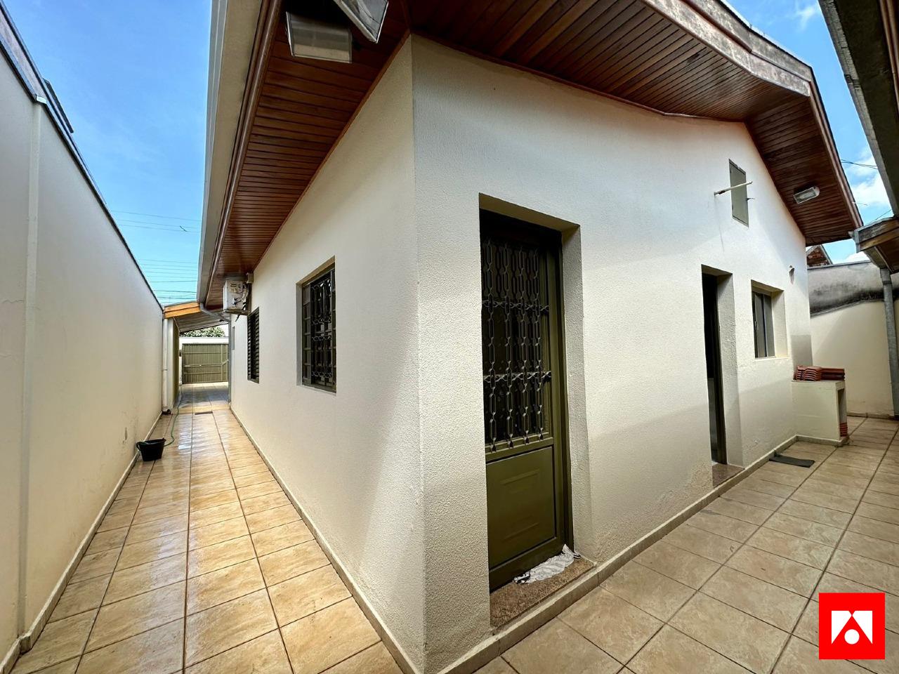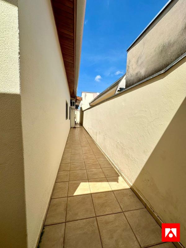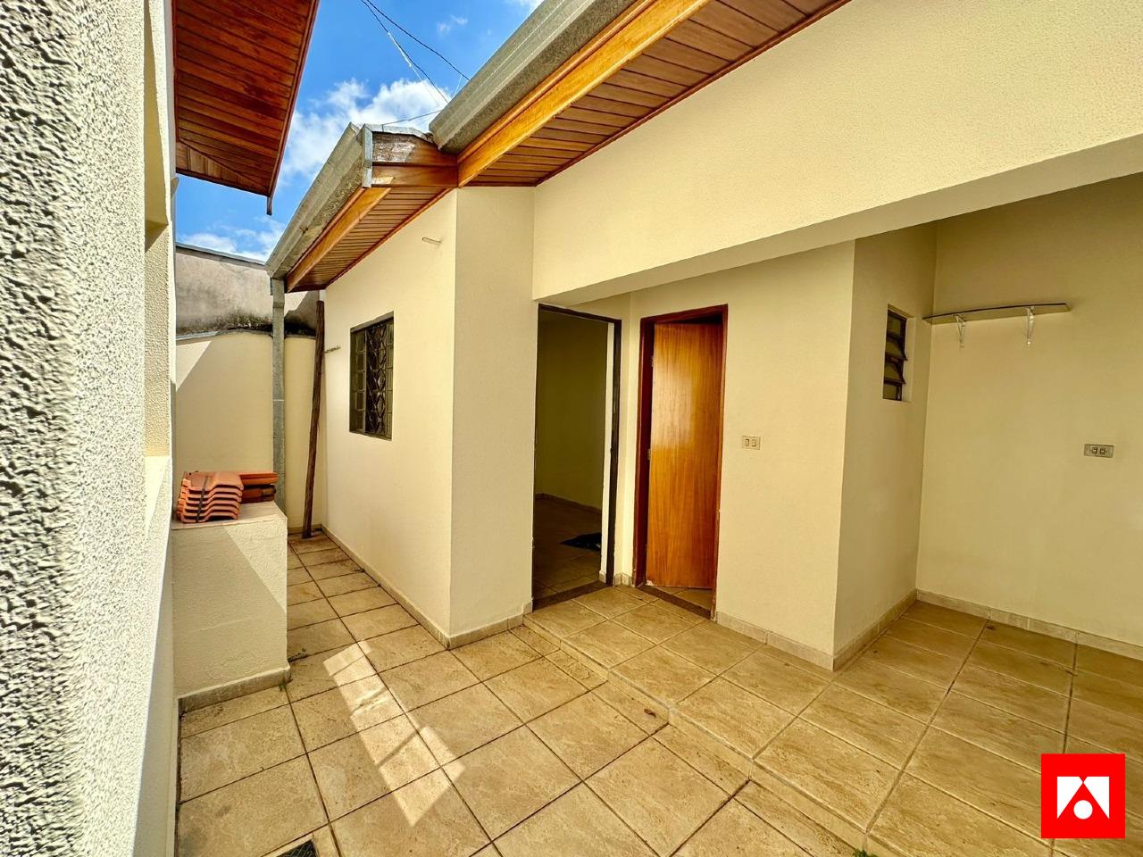 A casa conta com 3 quartos, sendo 1 suíte com banheira de hidromassagem, 2 banheiros sociais, sala, cozinha com armários planejados, despensa e lavanderia, além de 3 vagas de garagem.