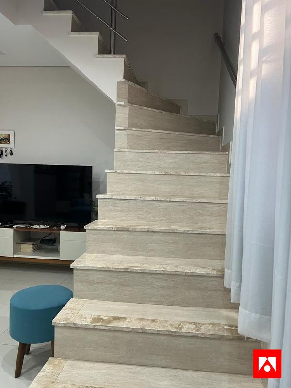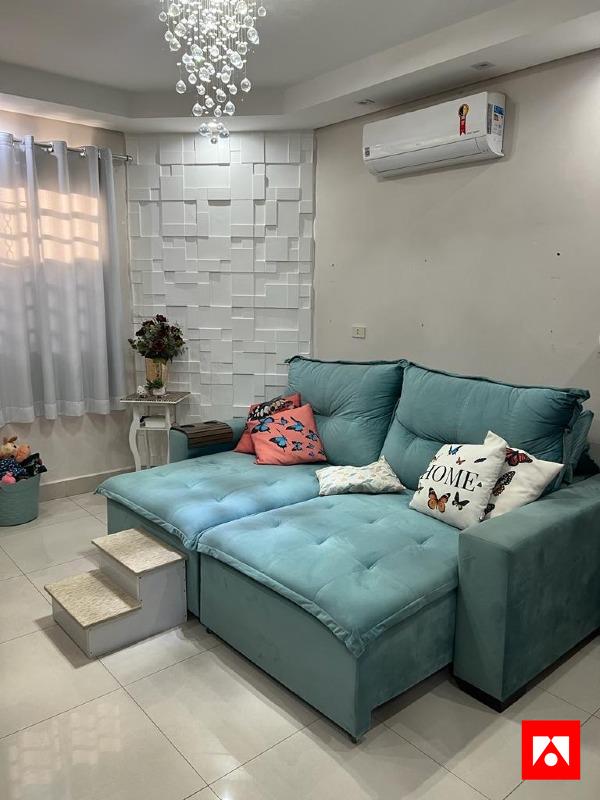 O sobrado conta com 3 quartos, 2 banheiros sociais (sendo 1 lavabo), sala, cozinha, área de serviço, ar-condicionado na sala e no quarto principal, armários planejados na sala, cozinha e em um dos quartos (em formato L), varanda, além de área gourmet com churrasqueira. O imóvel também oferece 2 vagas de garagem cobertas.